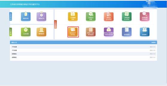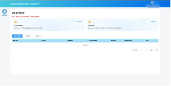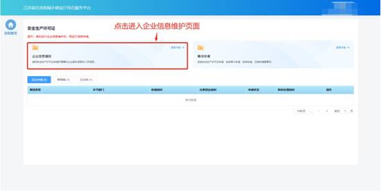 点击首页“企业管理”模块中“安全生产许可证”图标可进入安全生产许可证功能模块页进行相关业务维护和办理。