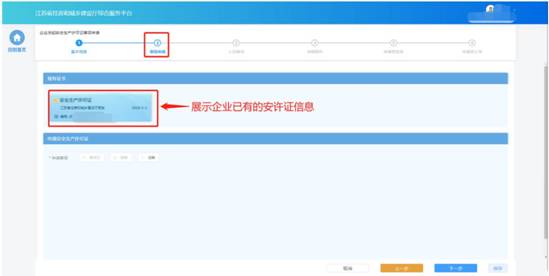 现有证书板块展示当前企业已有的安全生产许可证信息,若没有安许证则不展示。