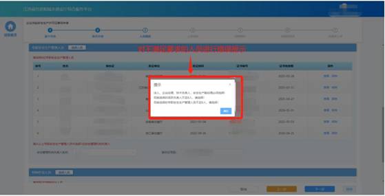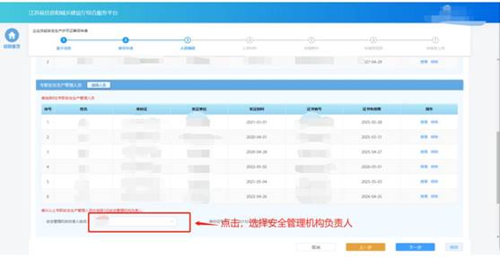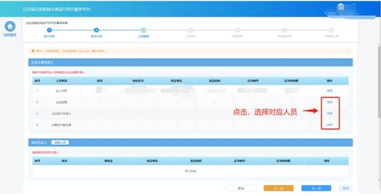 择人员”按钮分别选择对应人员。选择专职安全生产管理人员后,需要