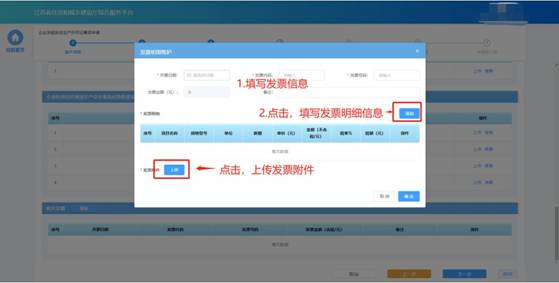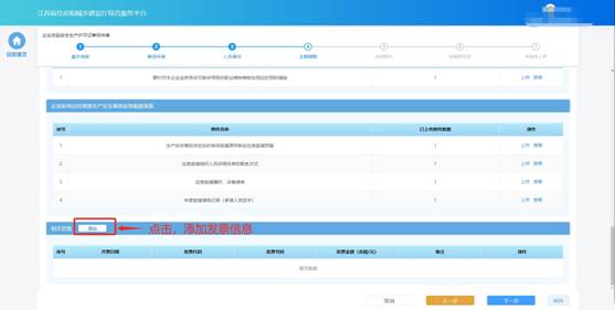 在“上传材料”环节页面上传本次申请要求的附件并填写发票信息,上传完成后点击“下一步”进入下一个环节。