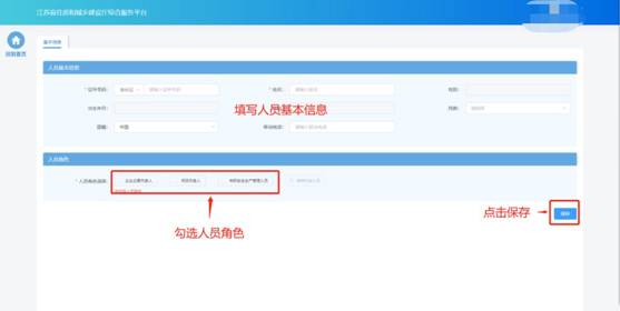 填写人员基本信息、选择人员角色,点击“保存”新增人员后,可继续