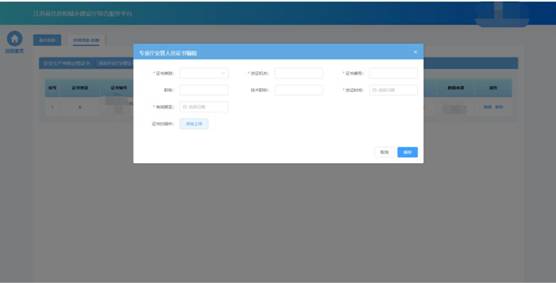 基本信息保存成功后,会出现详细信息页面,用于维护当前人员专业厅安管证书。