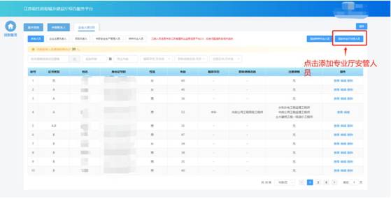 对于专业厅安管人员,可以由企业手动添加,点击“添加专业厅安管人员”添加专业厅安管人员。