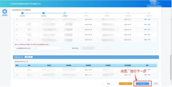 完成事项和资质选择后,点击“下一步”进入下个环节。