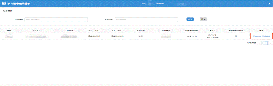 (1)选择对应的要补办(换发)的证书信息,点击证书补办或证书换发