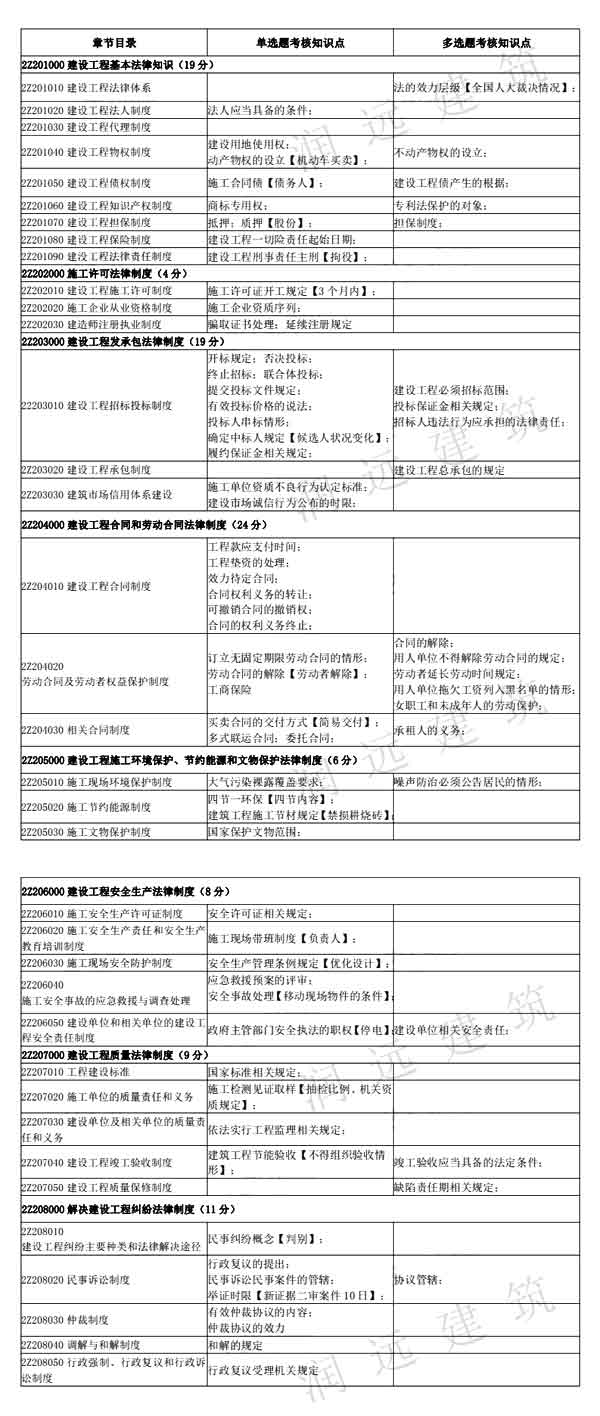 | 章节目录 | 单选题考核知识点 | 多选题考核知识点 |