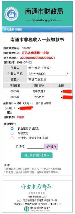 第一步:用微信、支付宝或农行掌上银行扫描南通市财政局非税收缴专网二维码;