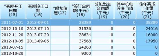 (7)自行完成的施工产值中不包括机电设备价值和分包出去的价值。如有这些价值的,应在工程库的19栏或20栏中填列,计算时“签订的合同额”中就会自动减去这些价值的。在设备安装产值中,不得包括被安装设备本身价值。填报时要注意的。